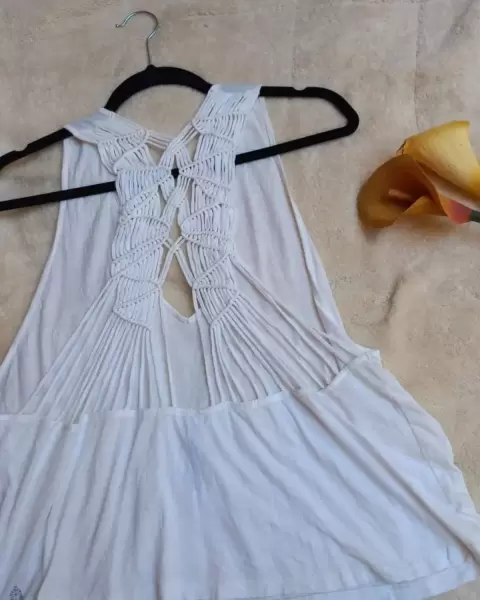 Blusa blanca con hermoso detalle en la espalda, ideal para ponerse con un top abajo.