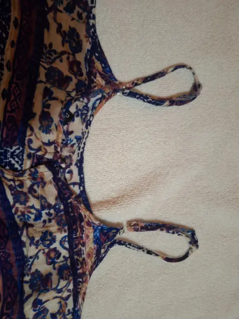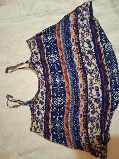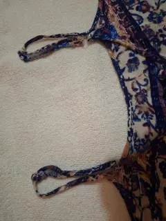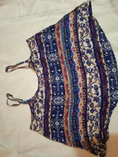Ligera, sexy y fresca blusa. Es de tirantes ajustables. Tiene vuelo, es decir, no queda justa. De la parte de atrás Tiene dos botones y la espalda es descubierta