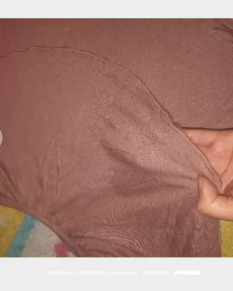 La blusa es color entre rosa y morado, es a los hombros y trae un holan muy bonito, esta es de uso, pero se mantiene en buen estado, es una muy bonita blusa