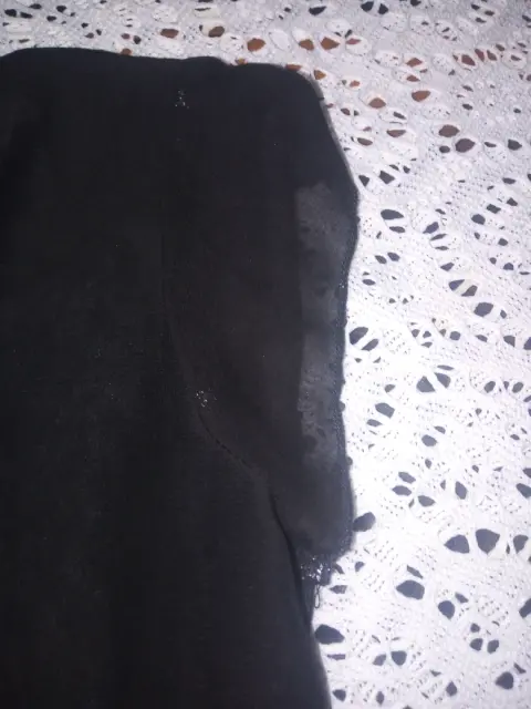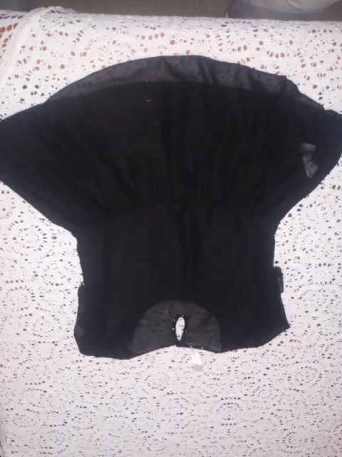 Blusa negra tela transparente manga corta, tiene botón en el cuello en la espalda, y olan a medio pieza. De cintura 74 cm, de axila a axila 80 cm, largo 45 cm . Marca cherokee talla M.