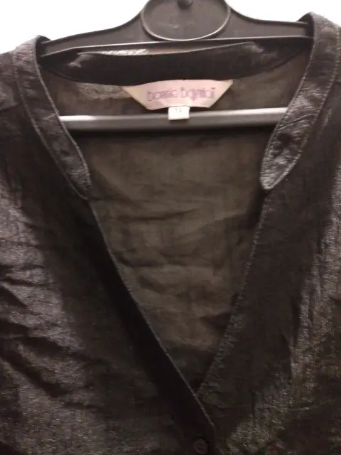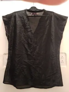 Blusa tela transparente, escote en V ,manga corta , negro tornasol, exelente estado