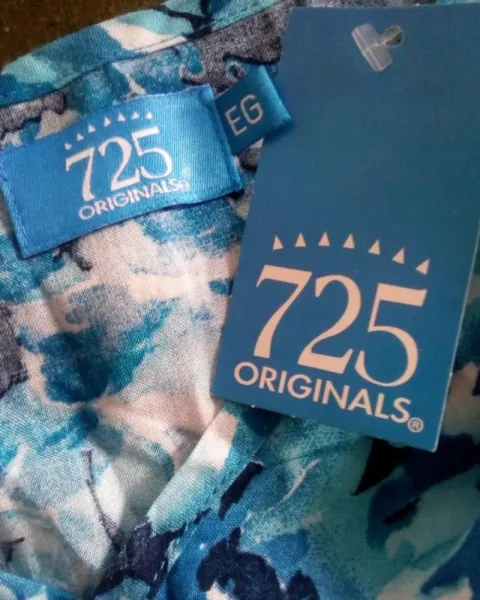 Blusón estampado en azul, talla EG. manga corta, con resorte en la cintura.