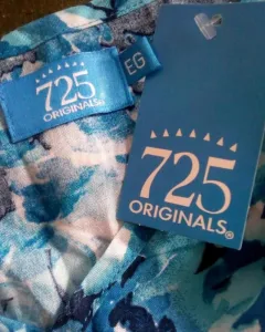 Blusón estampado en azul con resorte. Blusón estampado en azul, talla EG. manga corta, con resorte en la cintura.