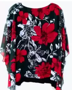 Elegante y vaporoso blusón Negro con flores rojas, súper fresco, incluye top T36, usada un par de veces.