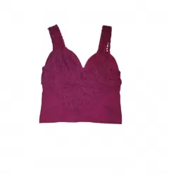 Top color guinda, tela tipo licra, parte de atrás tejida, talla S en buen estado.