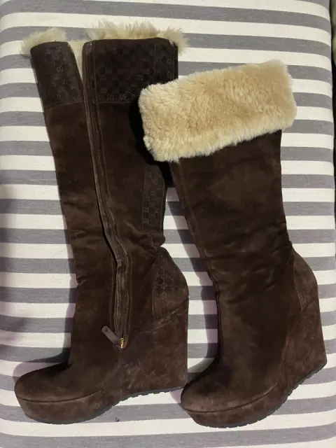Botas ante con peluche. Hermosas botas de color café en ante y en la parte superior con peluche interno, puede usarse de dos formas , están en perfecto estado, el tacón es completo por lo tanto son muy cómodas