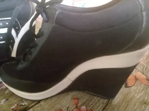 Zapato de plataforma #4 color negro/blanco, cómodo al caminar ... Con pequeños de talles de raspón nada que afecte al calzado
