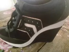 Zapato con plataforma color negro. Zapato de plataforma #4 color negro/blanco, cómodo al caminar ... Con pequeños de talles de raspón nada que afecte al calzado