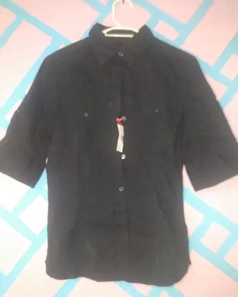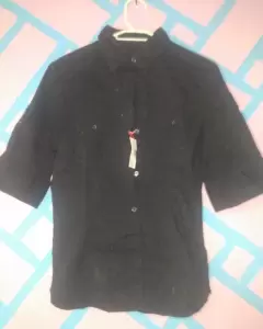 Camisa negra. Manga de 3/4 con botones completos y con bolsas en el pecho
