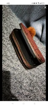 Cartera de dama. Cartera dama color café con pompón de adorno super padre Dos cierres tamaño de 20 cm aprox