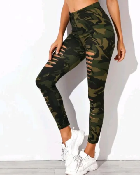 Leggings rotos con estampado de camuflaje