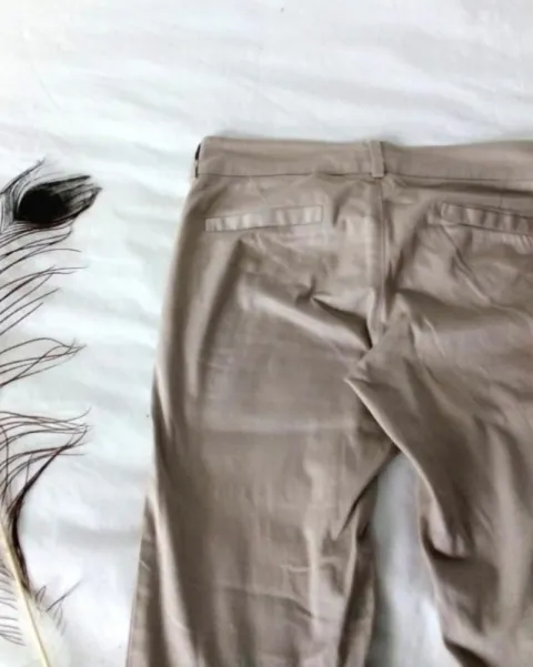 Pantalón de vestir. Tela de gabardina, práctico y básico para tu guardarropa.El largo está ajustado para alguien de 1.50.Talla 22 Mex