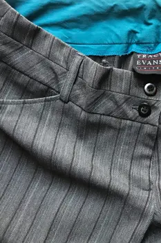 Pantalón vestir Tracy Evans talla 6 pantalón corte recto en las piernas / pretina ancha / color: rayado gris, negro, verde