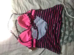 Bonito bikini top color negro y fiusha con tirantes ajustables largo a la cintura perfecto si no te gusta mostrar demasiado