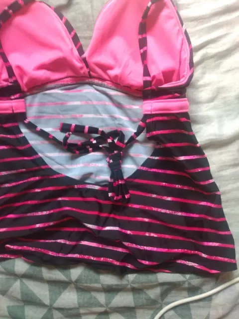 Bikini largo. Bonito bikini top color negro y fiusha con tirantes ajustables largo a la cintura perfecto si no te gusta mostrar demasiado