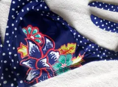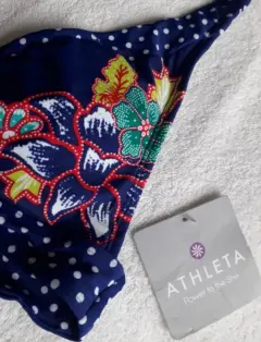 Hermoso traje de baño, marca Athleta, es armado, el top es talla xs pero viene amplio, queda a talla ch o m ya que trae tirantes para ajustarse en cuello y espalda, el bikini es talla m fiel a su talla. Color azul rey con lunares blancos y flor-hojas en top y bikini.