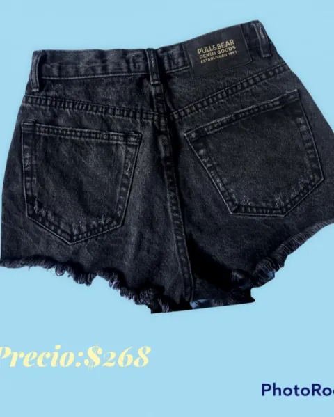 Short PULL&BEAR negro. No tiene detalles, solo me lo puse una vez y fue solo para medírmelo ya que no me quedo, la tela es de mezclilla y es color negro, gris