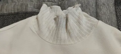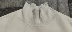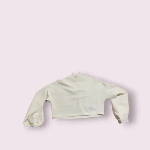 Suéter tipo Top bombachito cuello alto. Se usó un par de veces, está casi nuevo.Es talla M pero viene un poco reducido así que puede quedar tanto a S como a M (un poco ajustado), es tipo top.Tiene detalles muy bonitos en las mangas y el cuello. La tela se transparenta un poco.