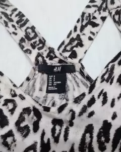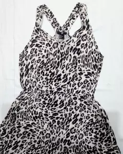 Vestido corto con estampado de leopardo, tela ligera y fresca, cuenta con resorte en la cintura para mayor ajuste.Medidas:Cintura: 76 cm de circunferenciaPecho: 94 cm de circunferenciaLargo: 55 cm de la cintura hacia abajo