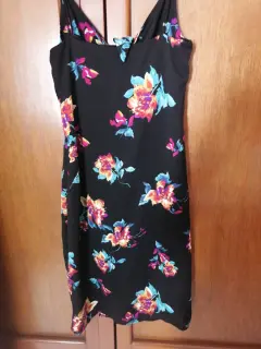 Vestido casual. Vestido con forro, casual de color negro con flores, llega hasta las rodilla entallado