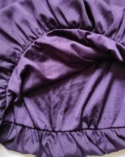 Bonito vestido corto en globo color uva a un hombro, con detalle en hombronde plisado no se transparenta y es muy comodo