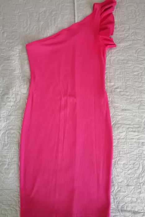 Vestido una manga con escarola. Bonito vestido talla 26 marca Bershka. La tela estira, el vestido se ajusta al cuerpo.