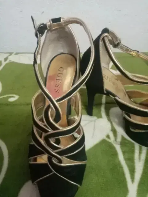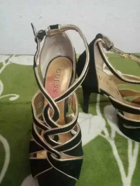 Zapatillas de plataformas Guess. Bonitas zapatillas abiertas de gamuza Negro / Dorado super padres son del N 4