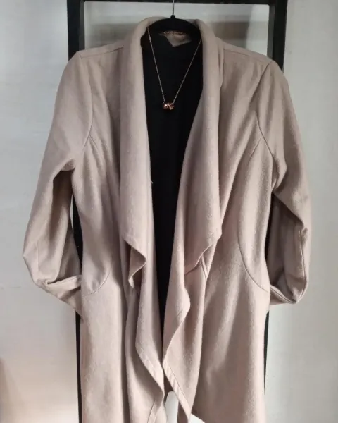 Abrigo. Abrigo color beige, versátil, con una solapa amplia muy juvenil, para usar abierto o cerrado. Fabuloso para usar con vestidos cortos o jeans