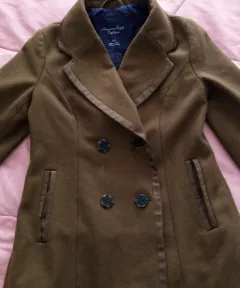Abrigo American Eagle color verde olivo. Abrigo de lana en excelentes condiciones, tiene forro, y todos sus botones. No tiene rasgaduras ni está maltratado. Tiene bolsas.