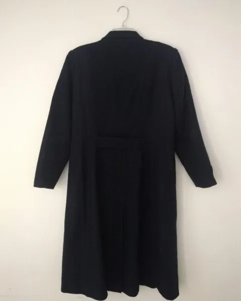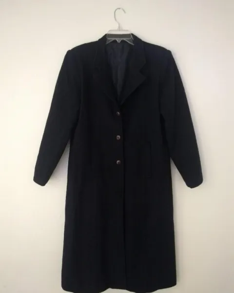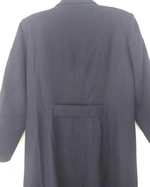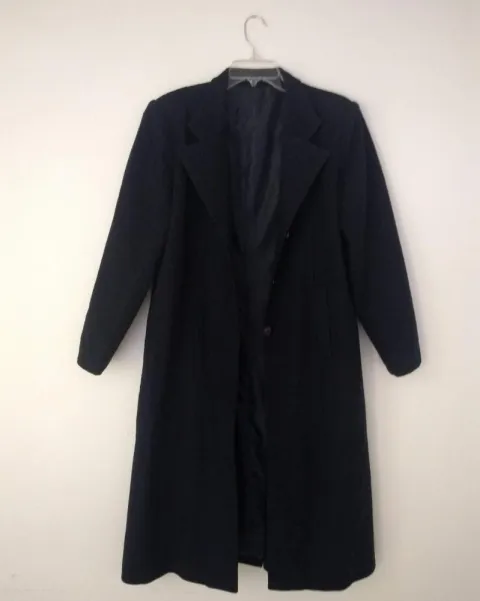 Abrigo Azul Marino, de corte largo con dos bolsas al frente, tela de lana, es una prenda usada, no esta roto, conserva su color, el detalle es que la tela esta mas peludita en ciertas areas como las mangas o los costados a causa del uso, considero que aun le queda vida, la etiqueta dice talla 34, le queda a una 30, 32 o 34, ancho Hombro=44cm, ancho Axila=57cm , ancho Cintura=51cm, ancho Cadera=61cm, Largo=112cm, largo Manga=61cm, Te regalo $100 con mi código de descuento si es tu primera compra iuNisj3oSQ