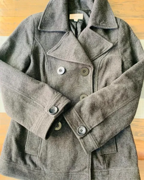 Abrigo calientito color gris. Precioso, tiene las mangas bombachas así es el estilo