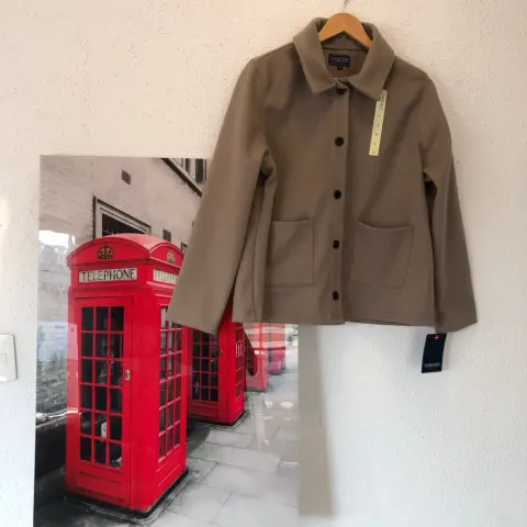 Abrigo 🧥 corto. Hermoso tono, botones al frente, bolsas al frente . Abrigador , sin detalles . Alto 65 cm. Ancho 56.5 cm . Axila a axila 58 cm .