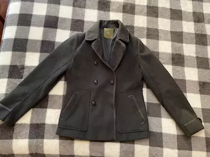 Abrigo corto. Hermoso abrigo corto color gris oscuro sin detalles, talla M.