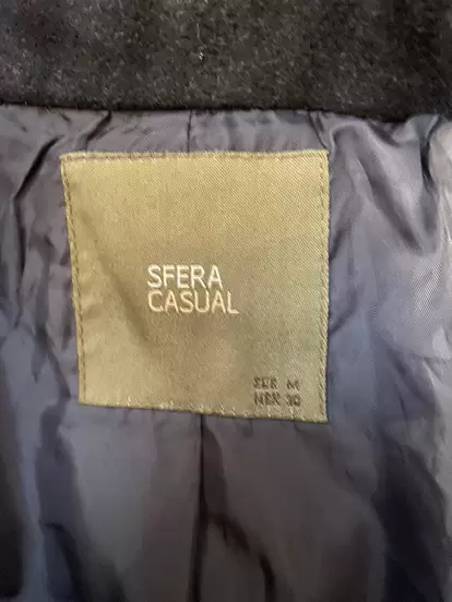 Hermoso abrigo corto color gris oscuro sin detalles, talla M.