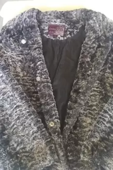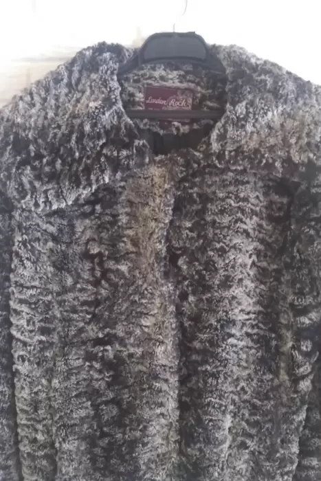Abrigo de peluche en color blanco/negro, de la Marca London Rock, ligero, elegante, muy suave al tacto, muy calientito, talla Mediana, se abrocha al enfrente, bolsas al frente, largo a la cadera, 100% poliéster, forro 100% poliéster, lavado y planchado en casa, 1 puesta, excelentes condiciones, sin detalles. Se entrega tal y como se ve en las fotos. El costo en tienda es de $ 850.00, lo vendo en $ 395.00