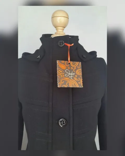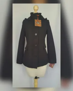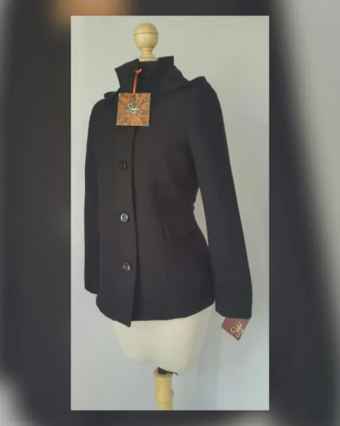 Abrigo Corto Lana Peinada Capucha. Abrigo corto en lana peinada color NEGRO ÉBANO, corte evasé, cuello Perkins, capucha DESMONTABLE p/botonadura, cierre p/cremallera oculta p/tapeta c/botonadura, 2 bolsos vivo c/tapeta y forro interior. Talla 32. Dimensiones cms: 38 hombro, 50 axila, 44 cintura, 59 zona baja, 69 largo, 61 largo manga. 80% lana, 20% poliamida. P/lavado en seco.***APROVECHA, ESTA MARCA YA NO COMERCIALIZA ABRIGOS CON ESTE PORCENTAJE DE LANA***ESTA PRENDA ESTA AVALADA CON EL SIMBOLO *WOOLMARK BLEND* QUE CONSTATA EL ALTO ESTANDAR DE CALIDAD DE ESTA PRENDA ELABORADA EN LANA***