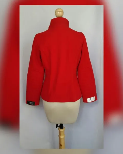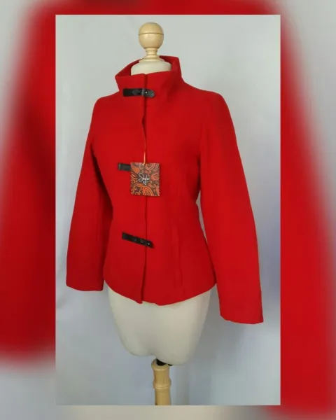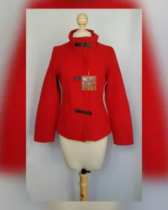 Abrigo Corto Lana Peinada Rojo Fuego. Abrigo en lana peinada color ROJO FUEGO, cuello Perkins, cierre p/cremallera cubierta p/tapeta y tiras, 2 bolsillos vivo frontales c/cremallera y forro interior. Talla 32. Dimensiones cms: 38 hombro, 53 axila, 45 cintura, 55 zona baja, 62 largo, 61 largo manga. 80% lana, 20% poliamida. Para lavado en seco.***APROVECHA, ESTA MARCA YA NO COMERCIALIZA ABRIGOS CON ESTE PORCENTAJE DE LANA***ESTA PRENDA ESTA AVALADA CON EL SIMBOLO *WOOLMARK BLEND* QUE CONSTATA EL ALTO ESTANDAR DE CALIDAD DE ESTA PRENDA ELABORADA EN LANA***EL TONO DE ROJO ES BELLÍSIMO, LAS FOTOGRAFÍAS NO LO CAPTAN***
