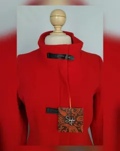 Abrigo en lana peinada color ROJO FUEGO, cuello Perkins, cierre p/cremallera cubierta p/tapeta y tiras, 2 bolsillos vivo frontales c/cremallera y forro interior. Talla 32. Dimensiones cms: 38 hombro, 53 axila, 45 cintura, 55 zona baja, 62 largo, 61 largo manga. 80% lana, 20% poliamida. Para lavado en seco.***APROVECHA, ESTA MARCA YA NO COMERCIALIZA ABRIGOS CON ESTE PORCENTAJE DE LANA***ESTA PRENDA ESTA AVALADA CON EL SIMBOLO *WOOLMARK BLEND* QUE CONSTATA EL ALTO ESTANDAR DE CALIDAD DE ESTA PRENDA ELABORADA EN LANA***EL TONO DE ROJO ES BELLÍSIMO, LAS FOTOGRAFÍAS NO LO CAPTAN***