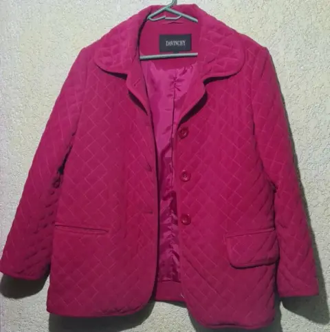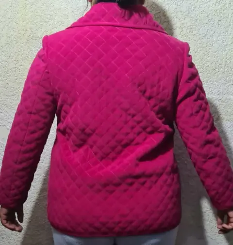 ABRIGO CORTO TALLA 36,MARCA DAVINCHY,COLOR FIUSHA, INCLUYE BOTON DE REPUESTO,ALGODÓN, TIENE FORRO,DE HOMBRO A HOMBRO 44.5 CM, DE AXILA A AXILA 56 CM, DE LARGO 59 CM, LIGERO PUNTO DETALLE ULTIMA FOTO