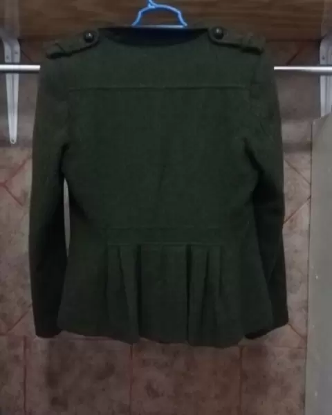 Abrigo corto verde militar. -Precioso abrigo de André Badi en excelente estado -Color verde militar-Talla CH/M-Es de 100% Lana y forro sintético, por lo que es muy calientito -Tiene un corte trasero super lindo -Si requieres mayor información o fotos no dudes en contactarme 😊😉-