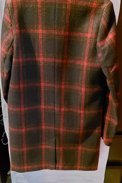 Abrigo cuadros. Abrigo estampado escocés a cuadros vino con negro, corte recto lana con nylon