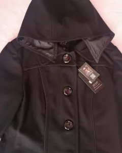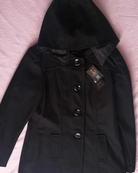 Tiene gorro desmontable queda un poco mas abajo de cintura y es de botones completamente nuevo con etiqueta