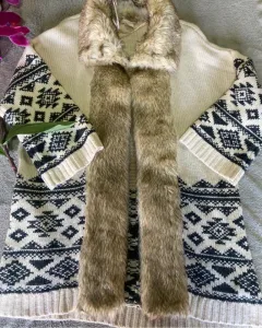 Abrigo de Estambre Etnico. Prepárate para el fin de año con este abrigo tejido con cuello de peluchito, estilo Etnico