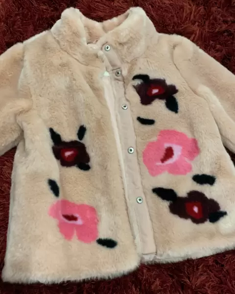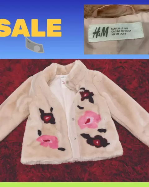 Abrigo de invierno - kids. Abrigo rosa afelpado al frente talla para niñas de 7-8 años