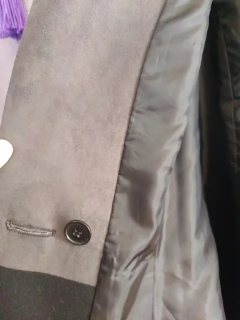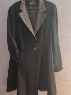 Abrigo, color negro. Largo, con boldillos. Solapa de gamuza en color gris. Super bonito.