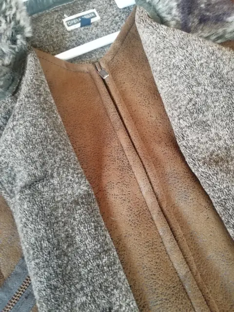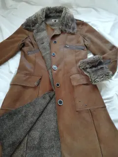 Abrigo de peluche color caféNo tiene ningún detalle, es un abrigo largo (como vestido), llega al muslo Es muy calientito