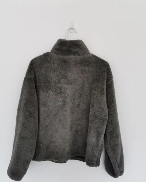 Abrigo de peluche muy, muy suave y calientito. Afectando. Cuello alto. Siper al pecho expuesto. Es amplio. Talla S.