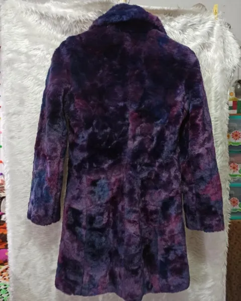 Abrigo de peluche talla chica en tonos morados. Abrigo de peluche talla chica en tonos morados. Medidas de axila a axila 47 cm. Y de largo 82 cm.