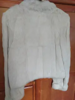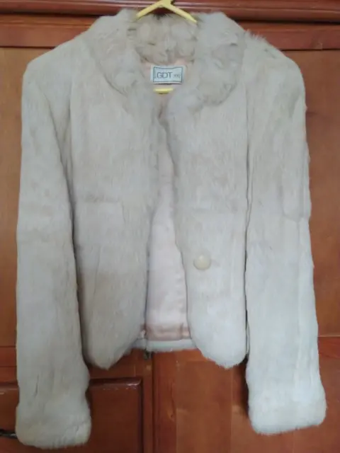 Abrigo de piel natural, corto, color beige, forro enterito, en excelentes condiciones.