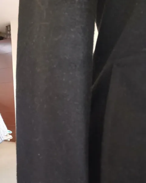 Abrigo de vestir en color negro. Abrigo de vestir en color negro tiene botones negros grandes y es de cuello redondo